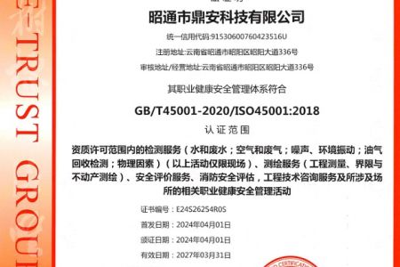 2003年11月10日,昭通市鼎安科技有限公司成立,初始主要從事第三方安全工程技術(shù)服務(wù),經(jīng)多年運營,發(fā)展為多專業(yè)綜合科技平臺,為社會提供多種專業(yè)技術(shù)服務(wù)工作。 現(xiàn)公司注冊資金為1200萬元,公司法定代表人:毛衛(wèi)旭。公司主要業(yè)務(wù):安全評價、安全標(biāo)準(zhǔn)化評審、安全工程技術(shù)服務(wù);環(huán)境監(jiān)測、職業(yè)衛(wèi)生檢測、檢驗;法律訴訟及非訴訟服務(wù);司法鑒定、固定資產(chǎn)投資項目節(jié)能服務(wù);工程咨詢;工程測量測繪;安全教育培訓(xùn)等。是安全生產(chǎn)服務(wù)、安全教育培訓(xùn)機(jī)構(gòu),也是環(huán)境監(jiān)測和職業(yè)衛(wèi)生服務(wù)機(jī)構(gòu),同時也是綜合的檢測檢驗、綜合科技平臺服務(wù)機(jī)構(gòu)。多年來為公、檢、法、司、軍、警、海關(guān)、仲裁、安監(jiān)、工礦商貿(mào)企業(yè)、社會團(tuán)體及個人提供多專業(yè)技術(shù)服務(wù)。